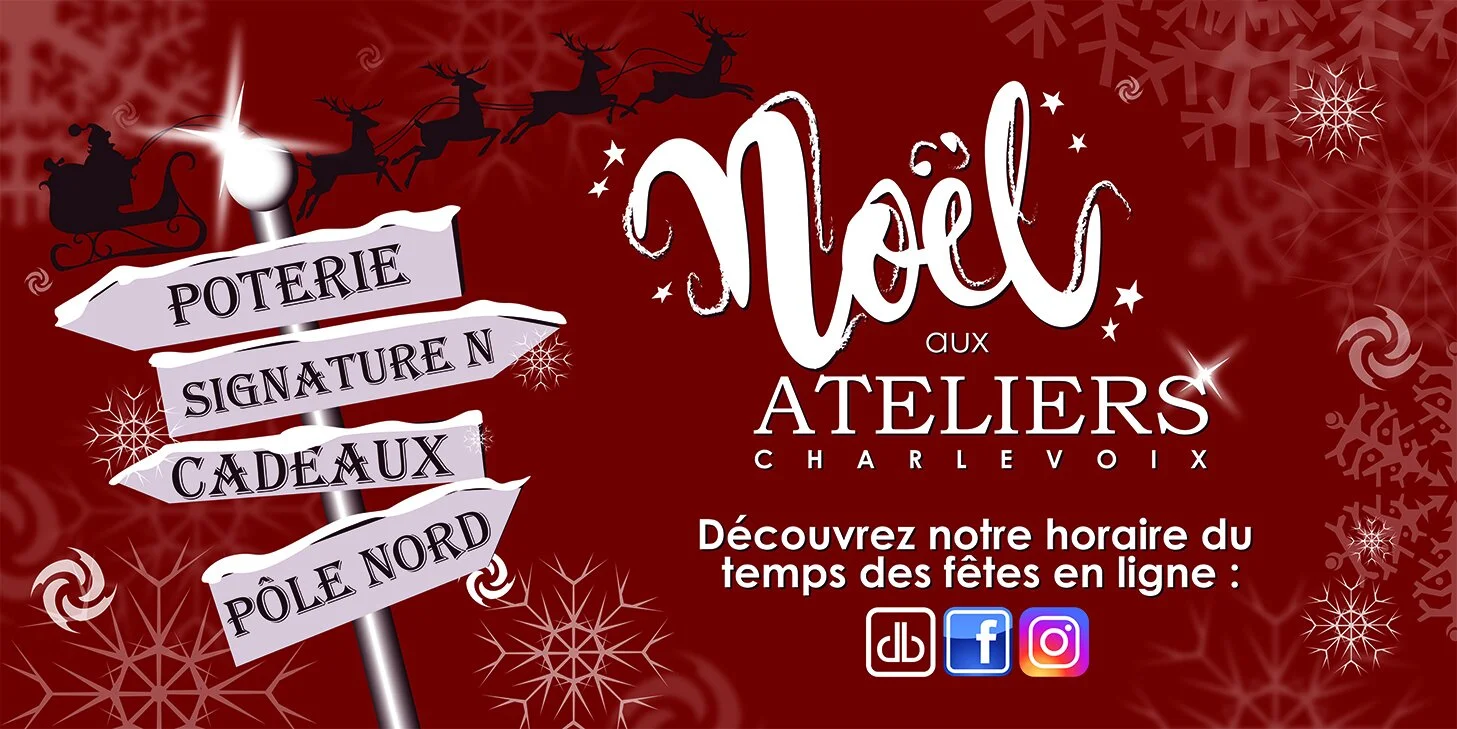 Il nous fait plaisir de vous recevoir pour une cinquième année d’affilée afin de partager ce bel esprit du temps de Fêtes. Les Ateliers Charlevoix seront ouverts 3 fins de semaine vous offrant une panoplie d’idées cadeaux: